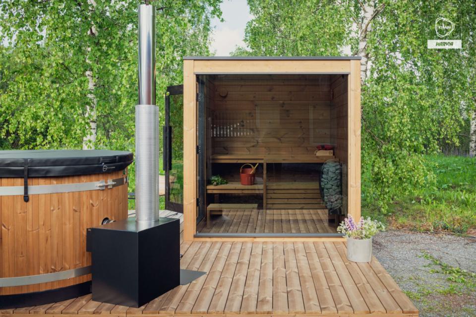 The pre-assembled Kirami FinVision® Sauna M Dawn is a ready to use outdoor sauna for 4–6 people.